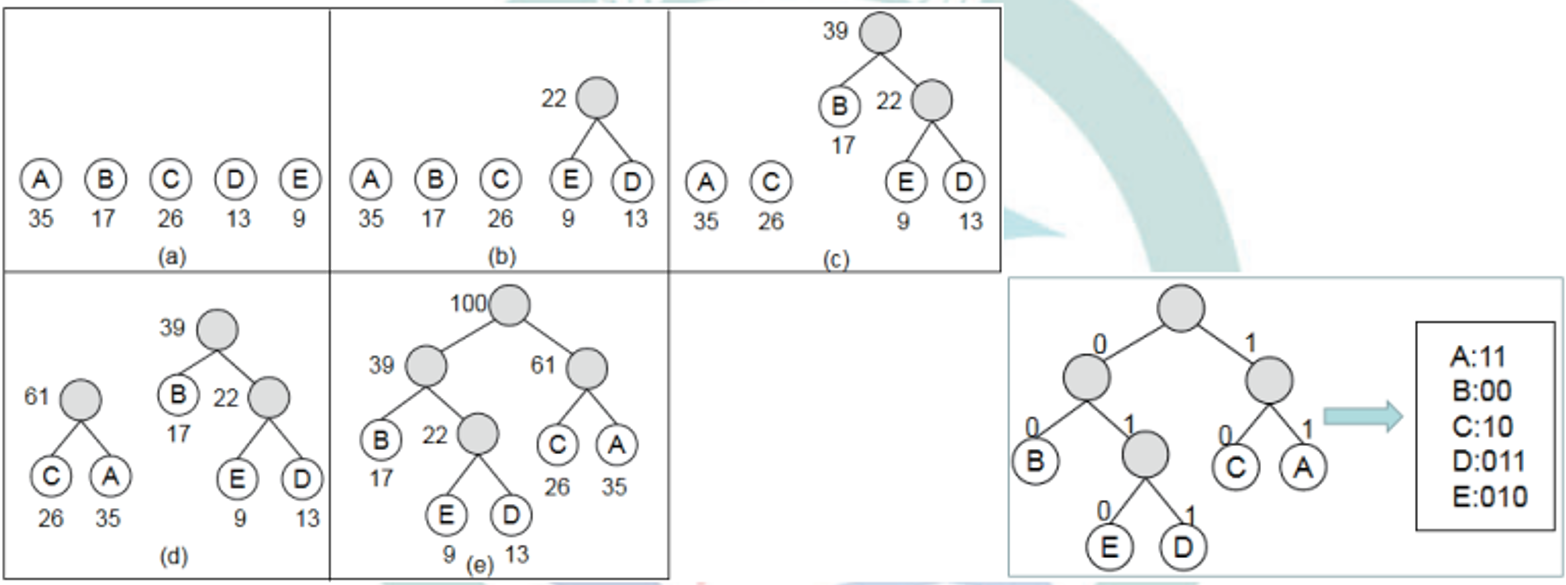 4. 重复 2、3 步,当集合中只剩下一棵二叉树时,这棵二叉树就是霍夫曼树。